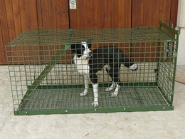 Dank eines großzügigen Spenders konnten wir eine Hundefalle kaufen (76 cm hoch, 60 cm breit, 160 cm lang). Das war leider die größte die wir auf dem Markt finden konnten. Eine größere, Marke Eigenbau wird wohl demnächst in Angriff genommen.